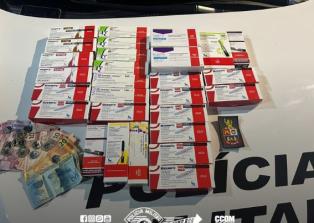 Um dos envolvidos foi detido na Rua Iru. Com ele, os policiais encontraram uma mochila contendo diversos medicamentos de alto valor, entre eles Ozempic e Wegovy, além de R$ 400,00 em espécie. Os itens recuperados foram avaliados em aproximadamente R$ 21 mil.