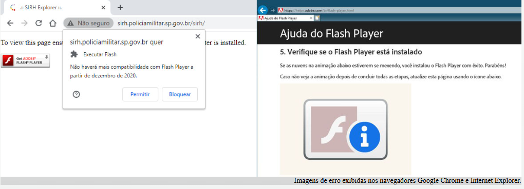 Após a Data EOL, a Adobe não pretende lançar atualizações do Flash Player ou patches de segurança. Portanto, a Adobe continuará a solicitar aos usuários que desinstalem o Flash Player e recomenda fortemente que todos os usuários desinstalem imediatamente o Flash Player, porém algumas aplicações da Polícia Militar foram desenvolvidas na linguagem Flash Player, como exemplo o SIRH.